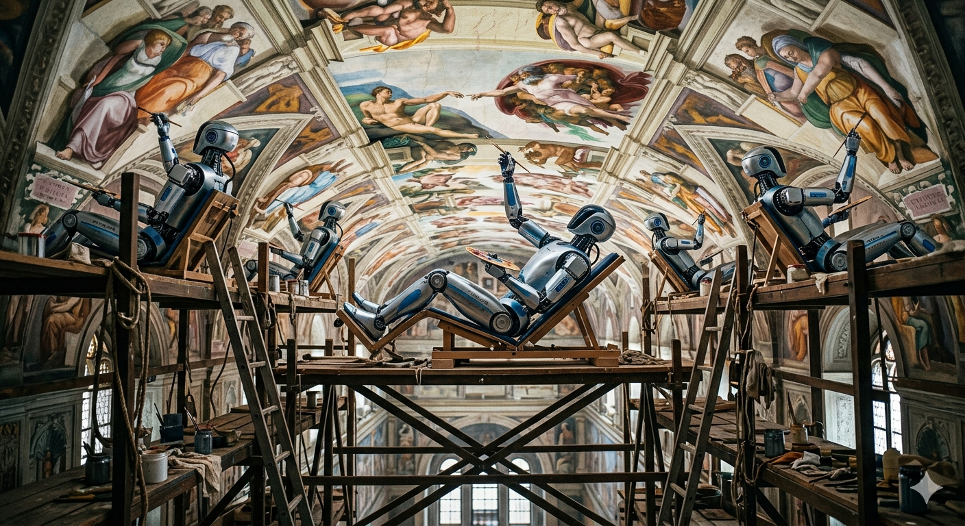 One does not wish to overstate. The image is a postcard. It was always going to be a postcard. But a postcard painted by a human being — even a bad one, even a mercenary one — would contain the evidence of a decision about where to place the light. This image contains no such decision. It contains only the statistical residue of ten million prior decisions, averaged into a result that resembles a decision the way a crowd resembles a conversation. The resemblance is, one supposes, the product. The distance between the resemblance and the thing it resembles is the paper's subject.