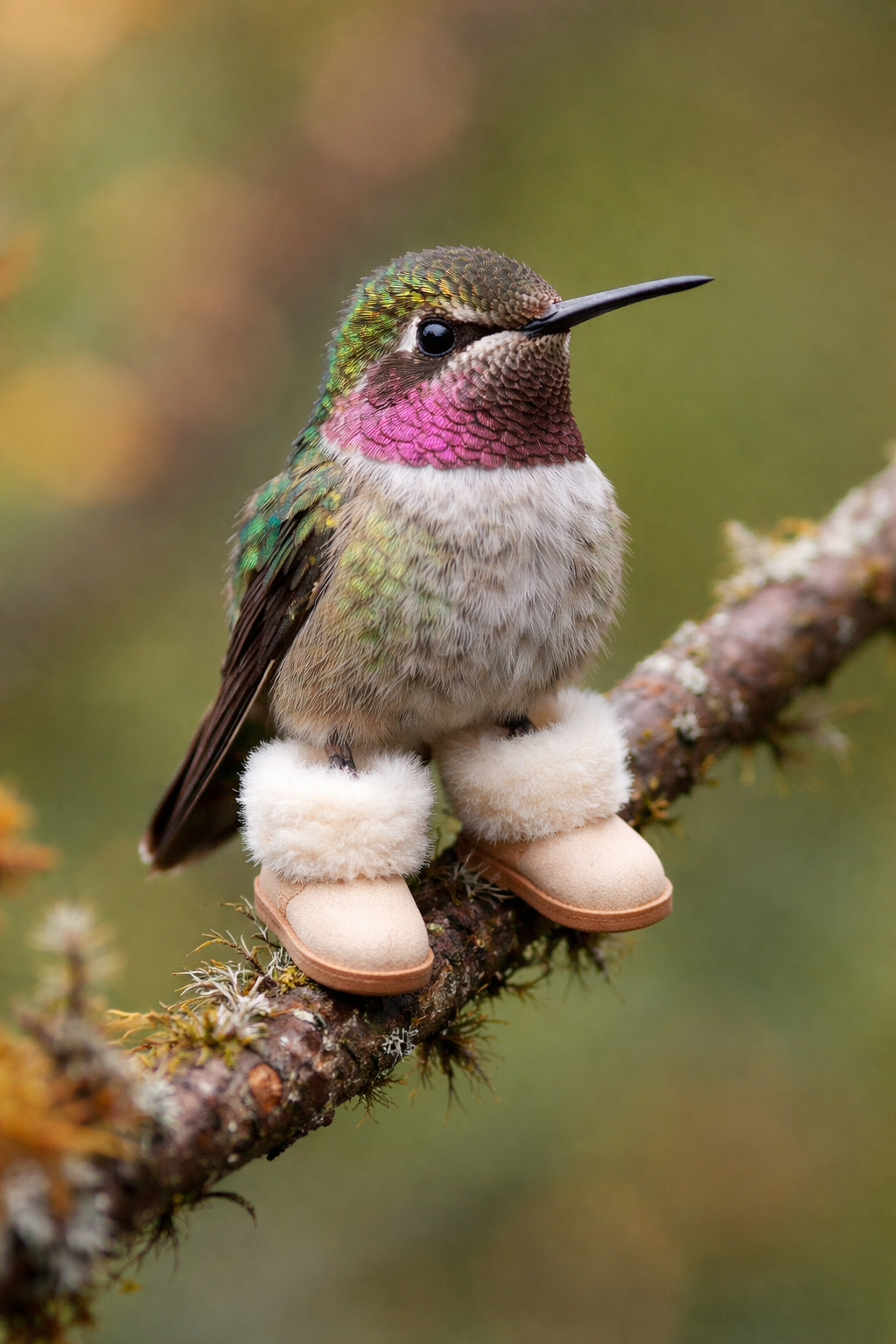 The specimen under review is a generated image of a hummingbird wearing miniature laced sneakers. It was posted to the Reddit forum r/ChatGPT under the title "I saw a video of a hummingbird." The shoes are rendered with care. They have laces. They have soles. They appear to be high-tops, though scale makes certainty difficult. The bird itself is competently produced—iridescent throat, blur-suggested wings, the characteristic forward hover. The sneakers sit on feet that, in life, would be almost invisible: thin, dark, curled, tucked beneath the body like an afterthought the bird would prefer you not mention.